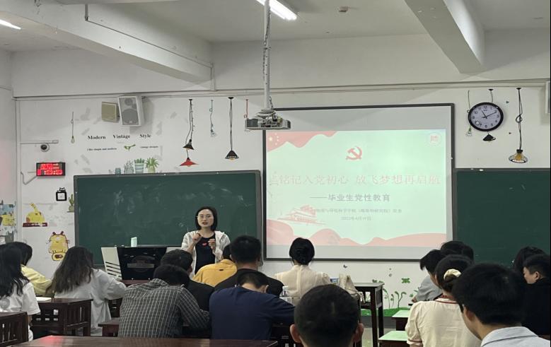 随后,翁应芳对毕业生党员进行了党性教育,她以“铭记入党初心扬帆起航再出发”为题,从毕业生党员文明离校的安排和近期主要事宜开始,从“三个一”活动、党员和积极分子档案材料、组织关系转接三个方面对毕业生党员进行党性教育,做好毕业生党员离校前党课,教育毕业生党员在各项工作中起到先锋模范作用。