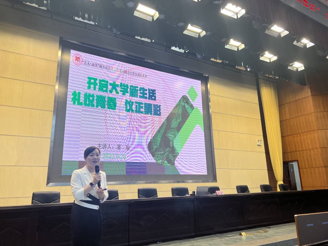 礼仪教育在老员工成长过程中具有重要功用。潘瑜老师以“礼悦青春 仪正精彩”为主题开展了新生礼仪培训,她指出,不学礼,无以立,并从个人形象基本礼仪出发,结合身边事例从社交沟通基本礼仪、教学场所基本礼仪、生活(办公)场所基本礼仪和数字时代基本礼仪四个方面向同学们详细讲述了老员工在大学不同场所需习得的基本礼仪,帮助同学们学习在大学中如何实现安其学、亲其师,乐其友、信其道,学会恰到好处的表达,做有意义的沟通,开启大学新生活。