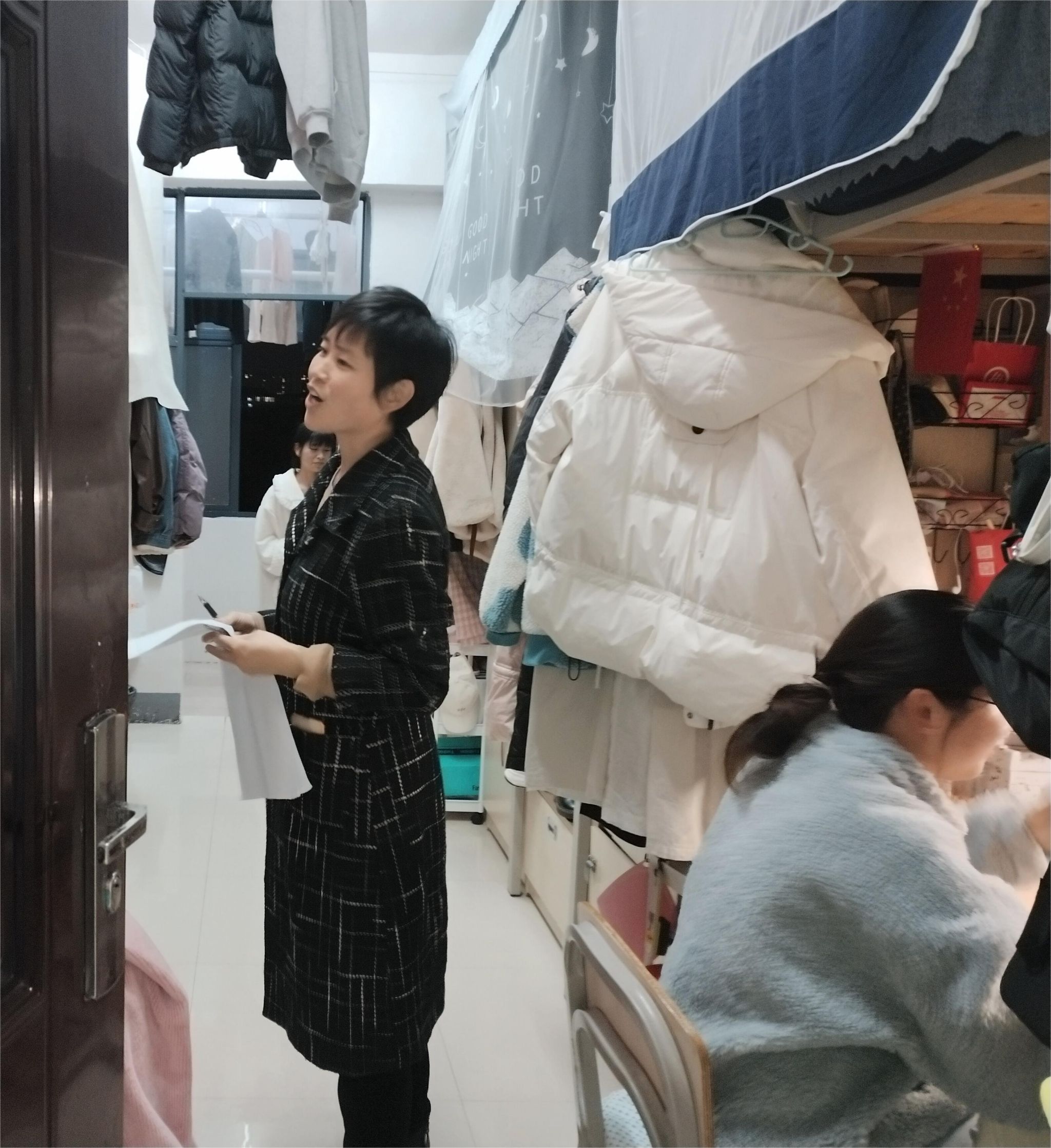 期末与凛冬同时到来,辅导员老师们深入寝室,对员工们嘘寒问暖并进行冬季消防安全知识宣传;关心员工期末的学习状态,提醒大家劳逸结合,诚信考试;叮嘱同学们珍惜同寝情谊,互帮互助,打造良好的寝室氛围。