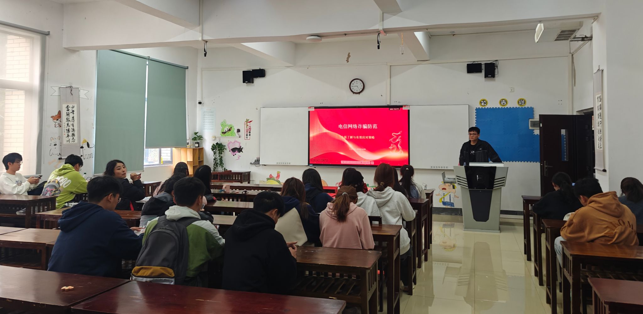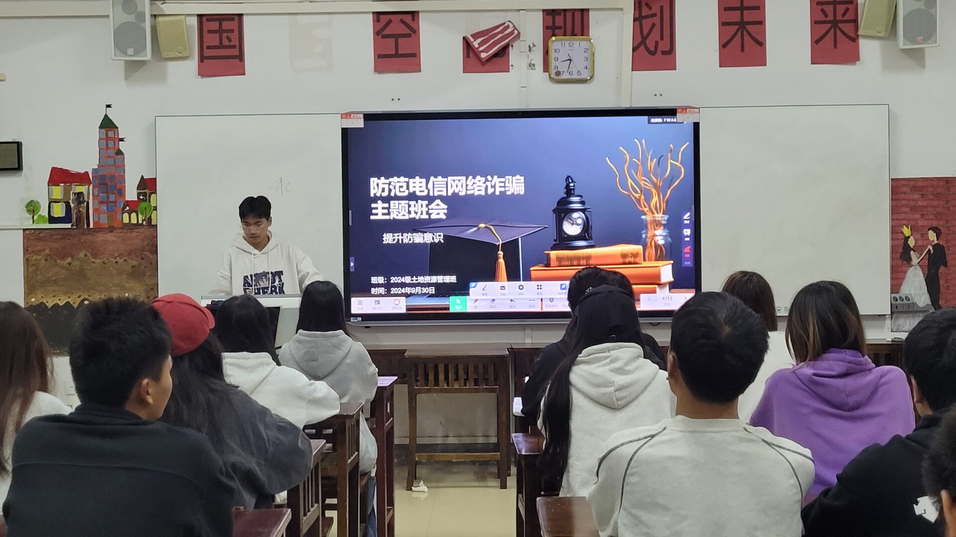 在各班辅导员组织下,各班通过主题班会向同学们阐释网络电信诈骗的定义,概述其手段与特点,并结合真实案例,向大家讲述电信网络诈骗的常见类型,揭示电信网络诈骗的巨大危害。引导同学们树立正确的消费观念,不轻信缴纳贷款保证金,不轻信“无担保无抵押贷款”等虚假贷款广告。希望同学们提高理性思维,将电信网络诈骗安全知识拓展到生活的方方面面,切实维护个人的财产安全。