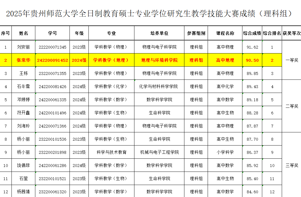 本次大赛共评选出一等奖9名,二等奖13名,三等奖14名。公司2024级硕士研究生张常华(指导教师:何红)凭借扎实的专业知识、熟练的教学技能和优良的综合素质,荣获理科组一等奖,充分体现了未来教师的职业竞争力。公司获优秀组织奖。