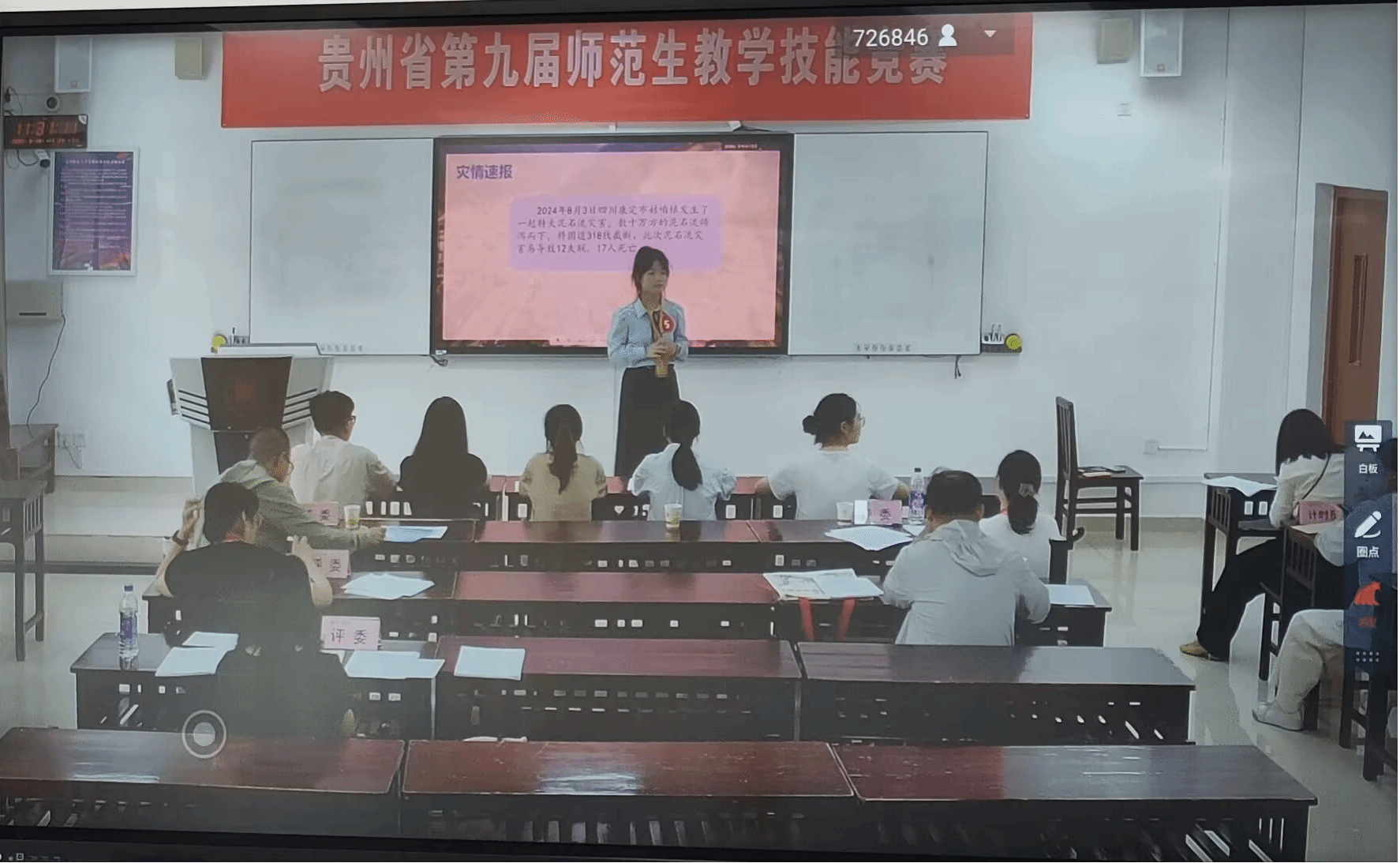 贵州省师范生教学技能竞赛每年举行一次,是目前针对师范生技能培养影响力最大的全省性赛事,目的是夯实师范生的专业素养、培养师范生的授课技能、为培育“四有”好老师打下坚实的基础。